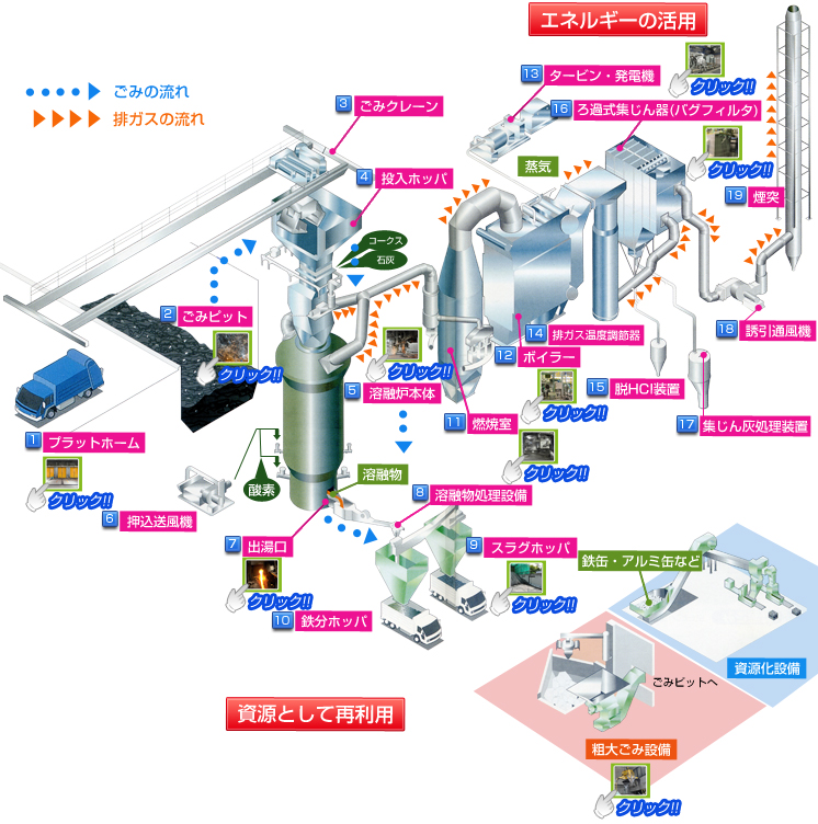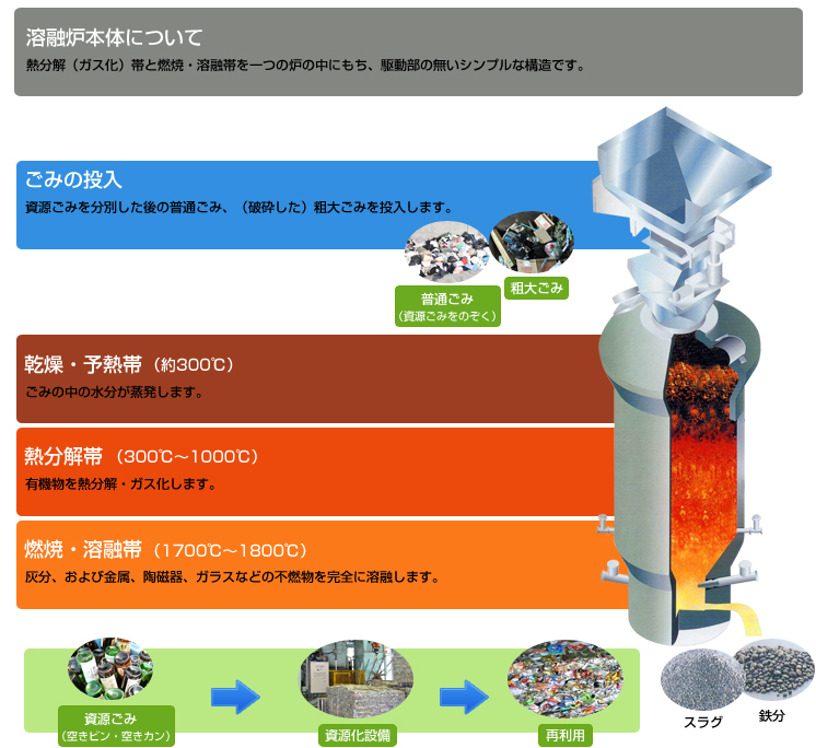 「資源循環型社会」を目指し、エコロは県内で初めて「直接溶融方式」を採用しました。